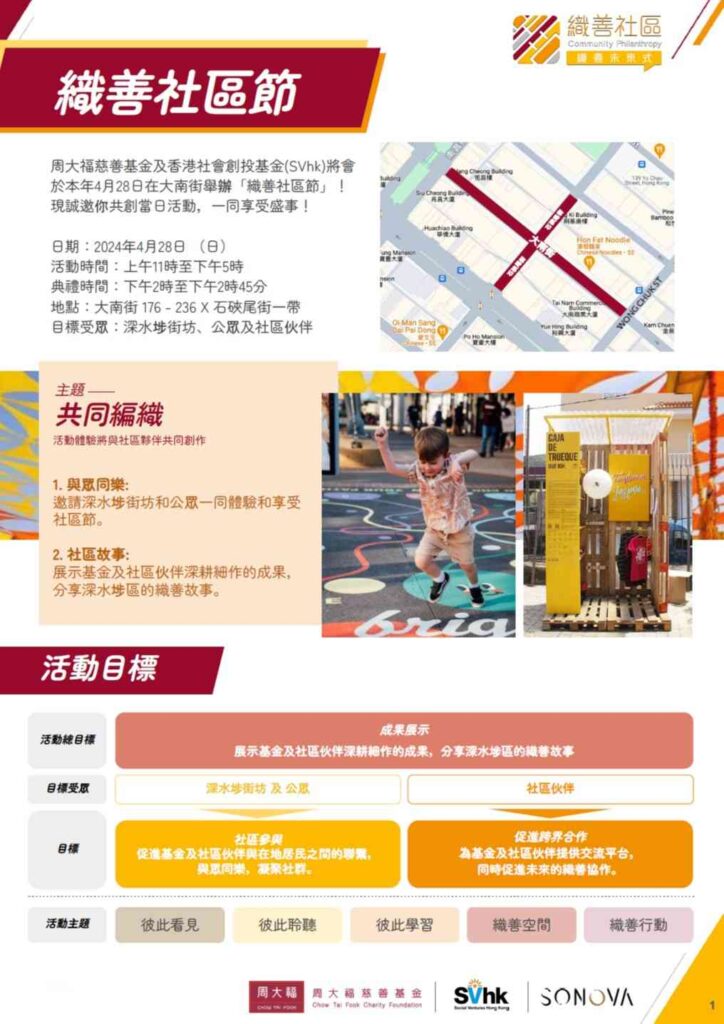 《人花誌》是獲周大福慈善基金邀請參與活動。活動以深水埗為基地,共邀請80個社區伙伴。「人花誌」擅以溫柔花語撫慰照顧者,利用環繞式影像裝置,打造沉浸式「五感紓緩小花園」,帶領照顧者投入花海世界,配以五感紓壓元素,讓大家放鬆心情、紓緩壓力。是次裝置更是因應深水埗的區域特色設置,以深水埗聞名的布藝為主軸,帶給參與者不一樣的觸感體驗。