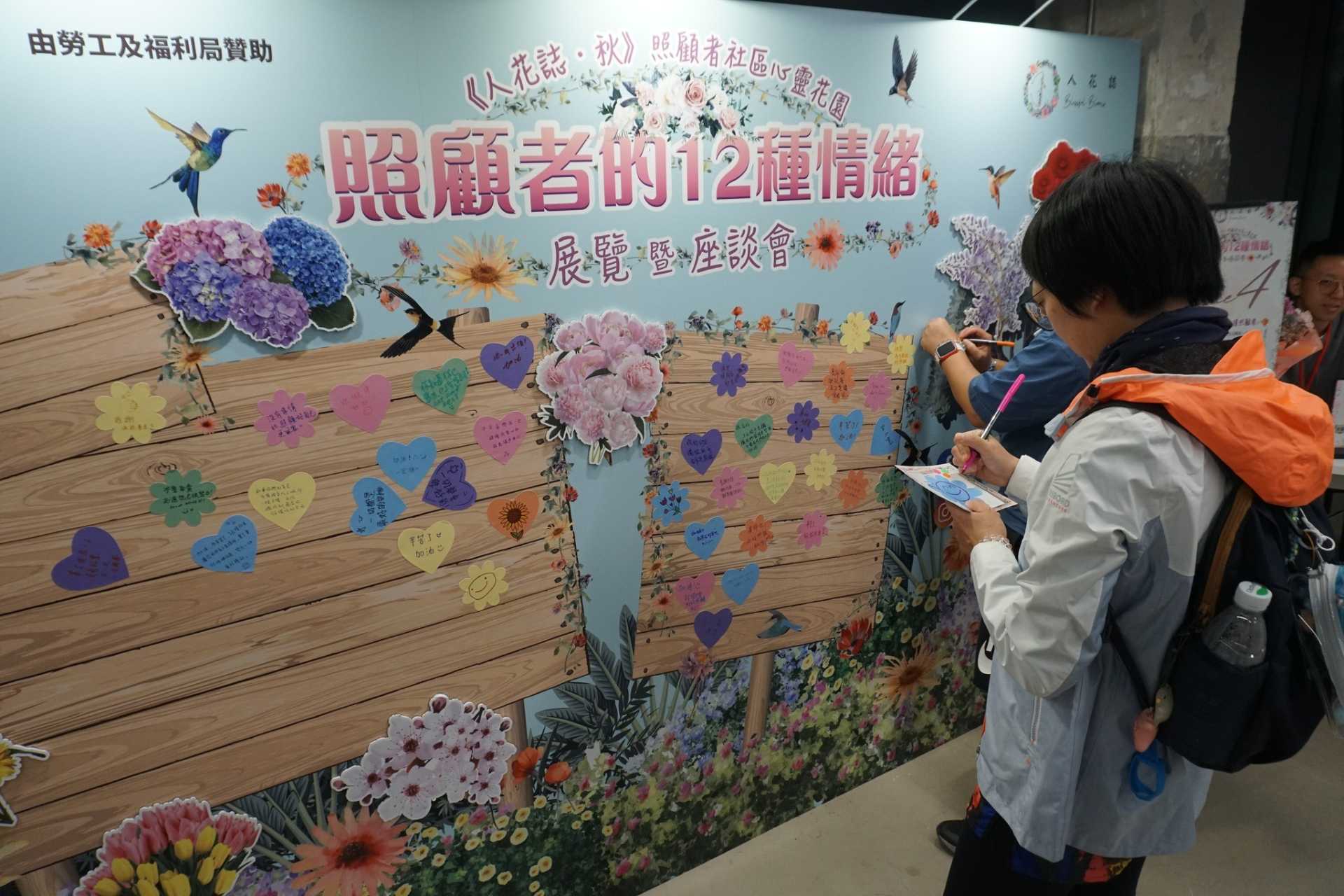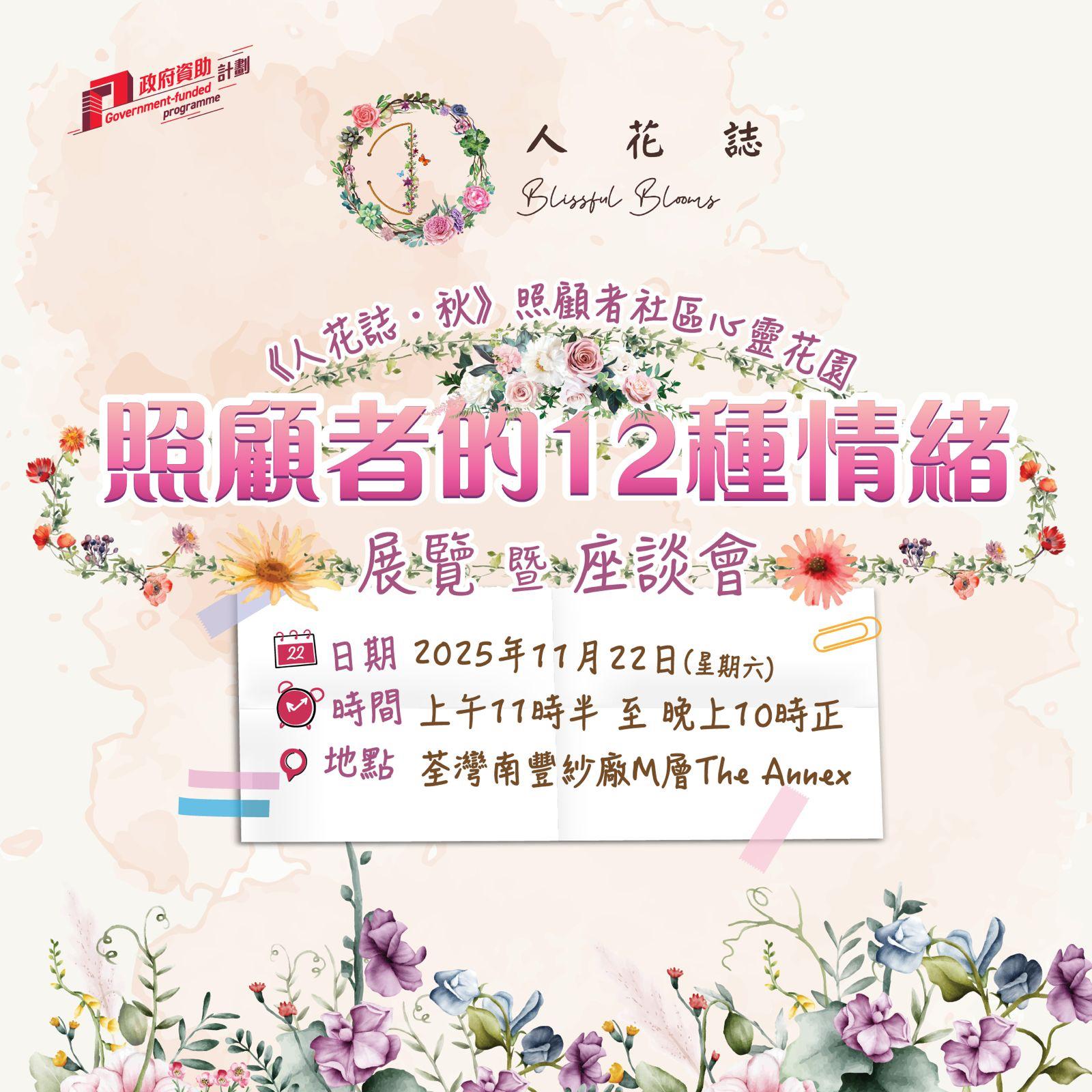 《人花誌・秋》照顧者社區心靈花園展覽暨座談會 2025年11月22日活動地點:荃灣南豐紗廠 The Annex目標對象:公眾人士主辦機構:大想頭創意有限公司 -《人花誌》照顧者情緒紓緩服務計劃 《人花誌・秋》照顧者心靈花園展覽暨座談會・圓滿舉行 由 勞工及福利局 贊助的『 《人花誌・秋》照顧者心靈花園展覽暨座談會』已順利完成,榮幸邀請到 勞工及福利局副局長何啟明JP 致辭及作主禮嘉賓,何副局長在致辭中肯定了照顧者嘅無私付出,亦強調咗社會各界同行支援照顧者嘅重要性。 《人花誌・秋》照顧者心靈花園展覽暨座談會 今次展覽運用了環繞式投影裝置帶大家走入殘疾人士照顧者嘅內心世界,感受他們日常面對嘅12種複雜情緒。科技同藝術結合,深刻呈現照顧者嘅心路歷程。 同場還有兩場【理解與傾聽】座談會,集合咗心理學家、企業代表同照顧者分享點樣用實際行動支他們。物理治療師鍾惠文博士教大家照顧身心,九巴簡學悕先生分享企業怎樣體諒員工照顧家庭,臨床心理學家何念慈女士分享如何安慰照顧者,還有病童家長恩德爸爸嘅親身經歷分享。 很多市民參觀活動,亦表示對照顧者的處境更深理解,並會更加留意身邊照顧者的精神健康。這份由理解出發的關懷,正正是建立照顧者友善社區的重要一步!